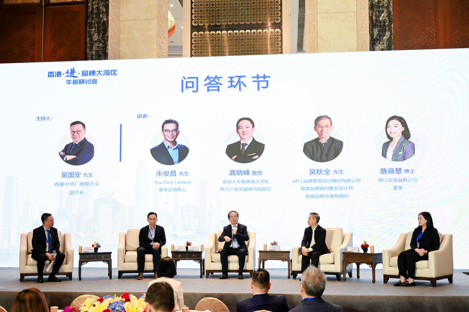 午餐研讨会邀得深圳大学粤港澳大湾区新兴产业发展研究院院长龚晓峰教授解构深入探讨新质生产力对提升品牌影响力的重要性;MCL品牌策划设计顾问有限公司首席品牌顾问暨总设计师兼香港品牌发展局顾问吴秋全先生分享掌握品牌形象学心法;接着,You Find Limited董事及创辨人朱俊昌先生讲解如何利用人工智能技术提升品牌的营销效率;最后由信山实业有限公司董事詹嘉慧博士分享香港品牌「b-MOLA」如何融合科技与品牌。活动邀请了约300位来自香港特区政府、行业协会、香港企业,以及于大湾区发展的香港初创公司代表进行交流。