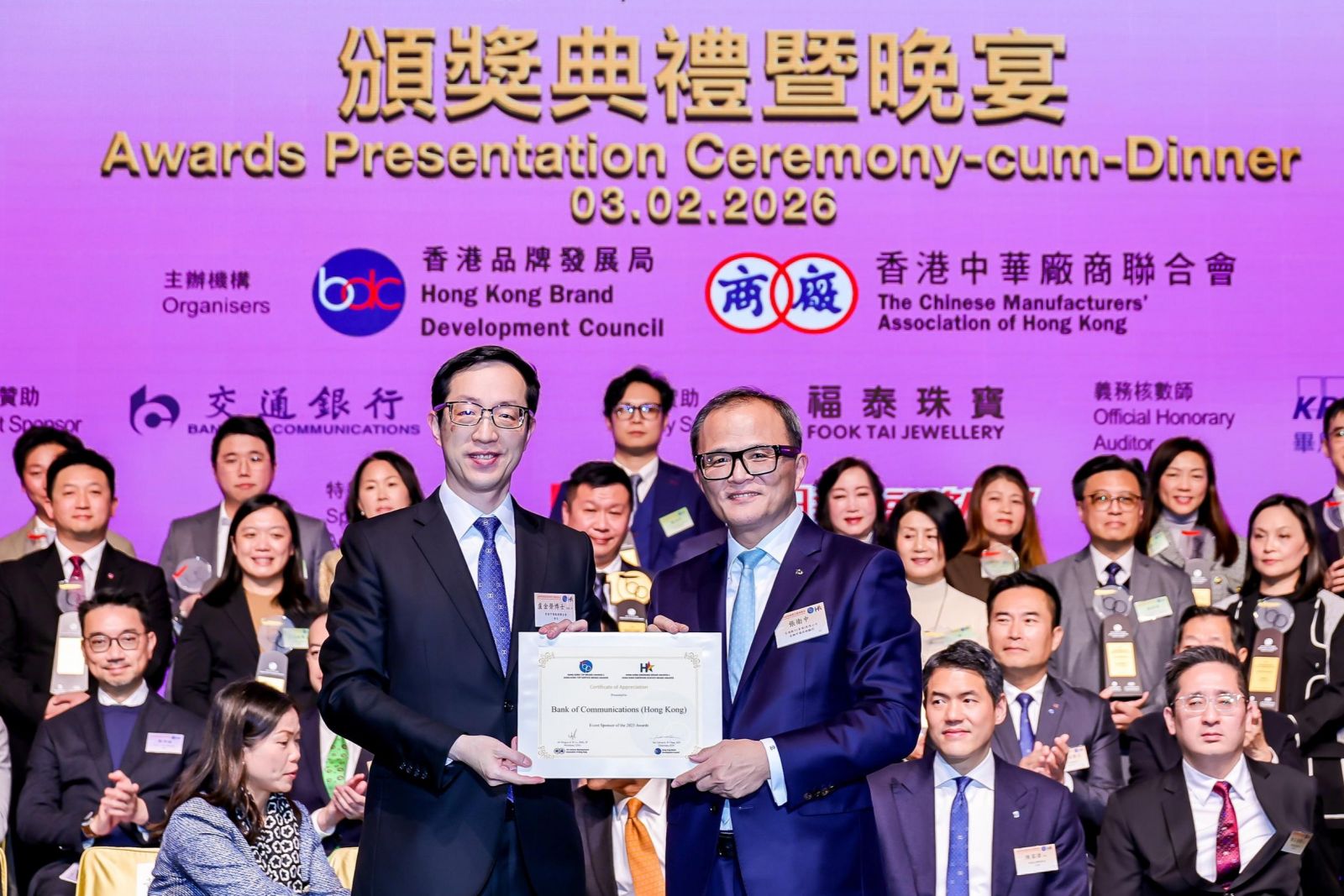 廠商會會長盧金榮致送感謝狀予2025活動贊助商代表交通銀行(香港)金融市場高級顧問張衛中(右)。