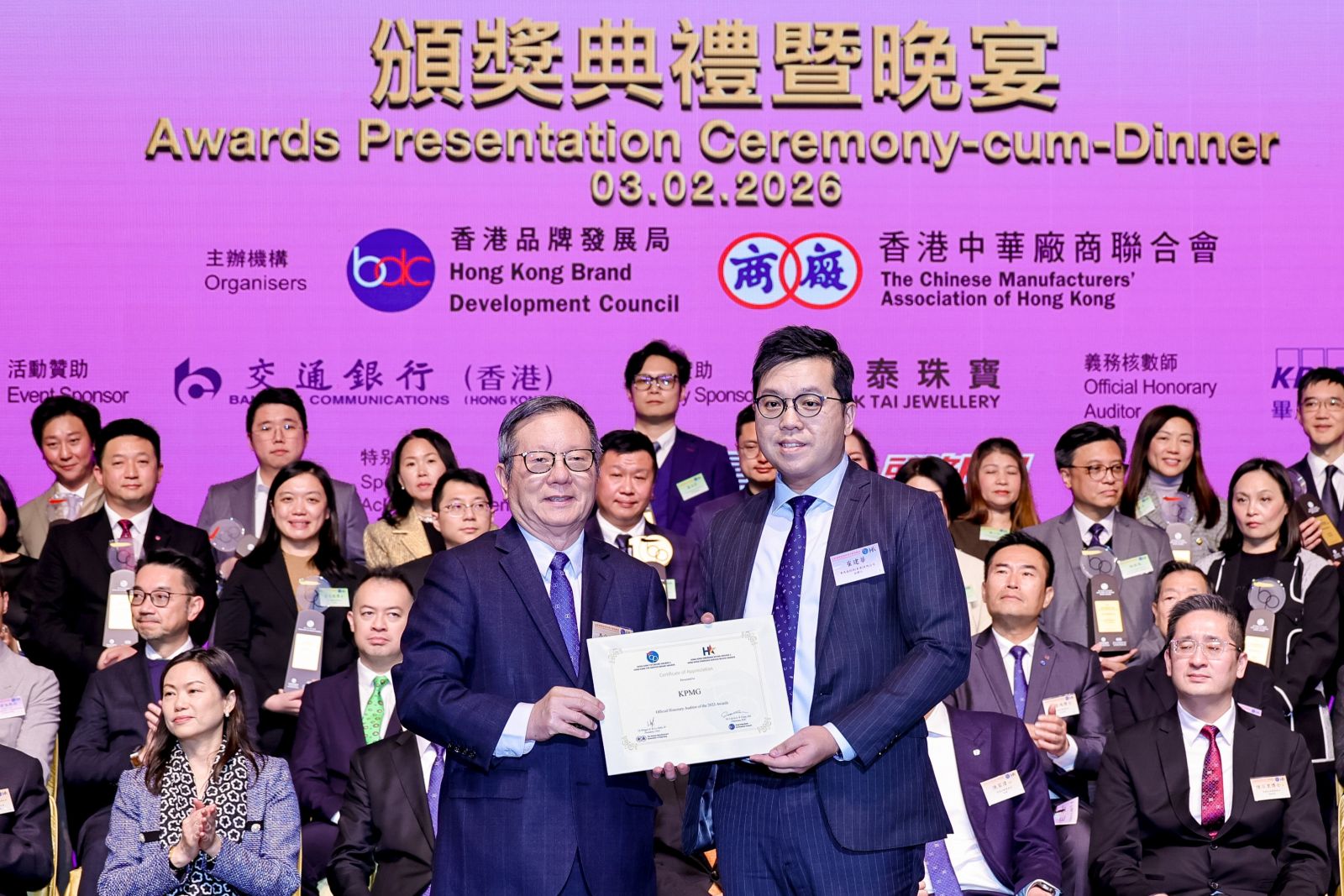 廠商會常務副會長兼品牌局副主席馬介欽致送感謝狀予2025義務核數師畢馬威會計師事務所審計合夥人崔建華(左)。