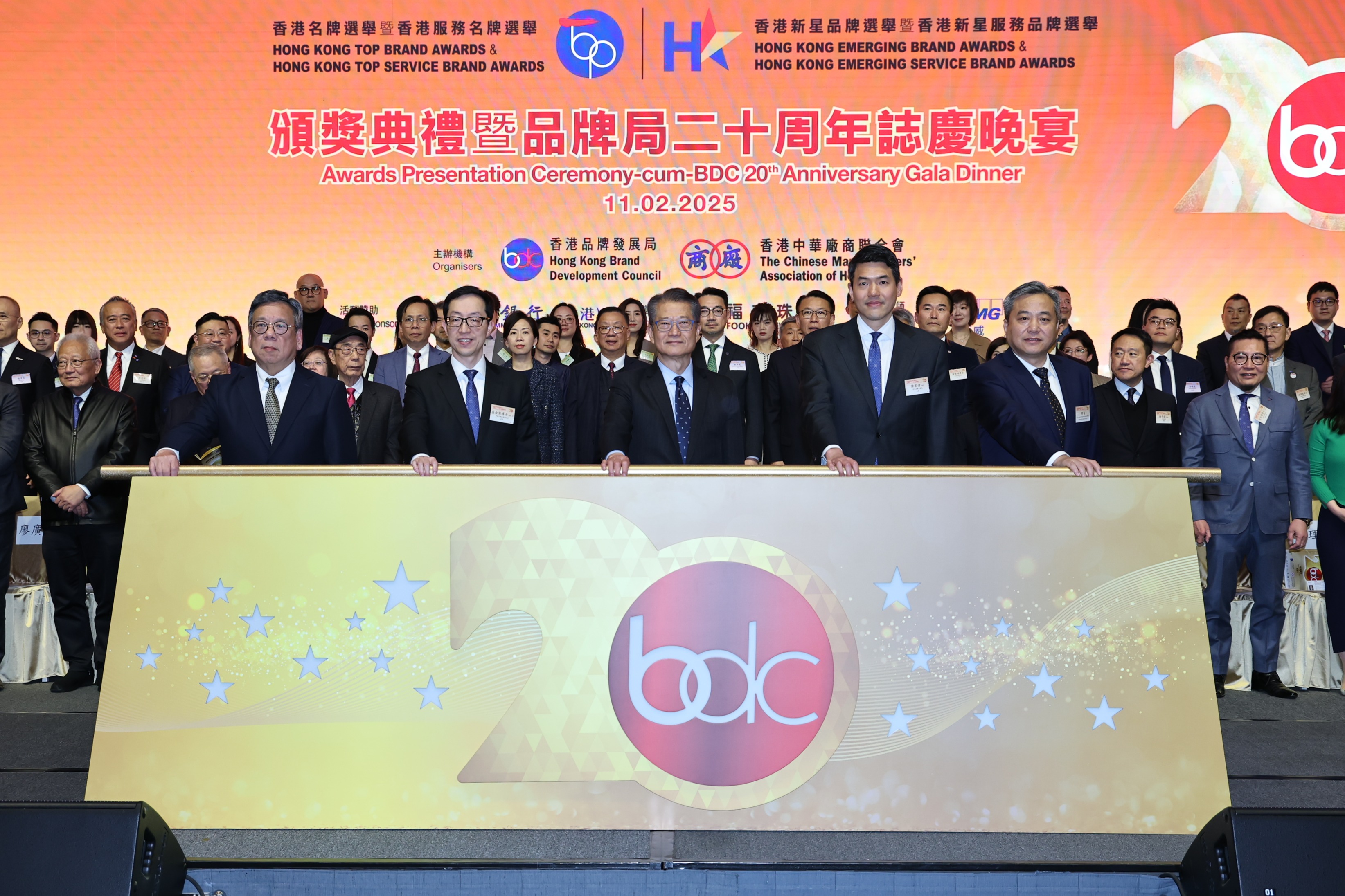 A grand dinner at the Conference Hall of the Hong Kong Convention and Exhibition Centre on February 11, 2025 was the highlight of the BDC’s 20th anniversary celebrations. Held in tandem with the Presentation Ceremony of 2024 Brand Awards, it was officiated by Financial Secretary The Hon Paul Chan and top government officials.