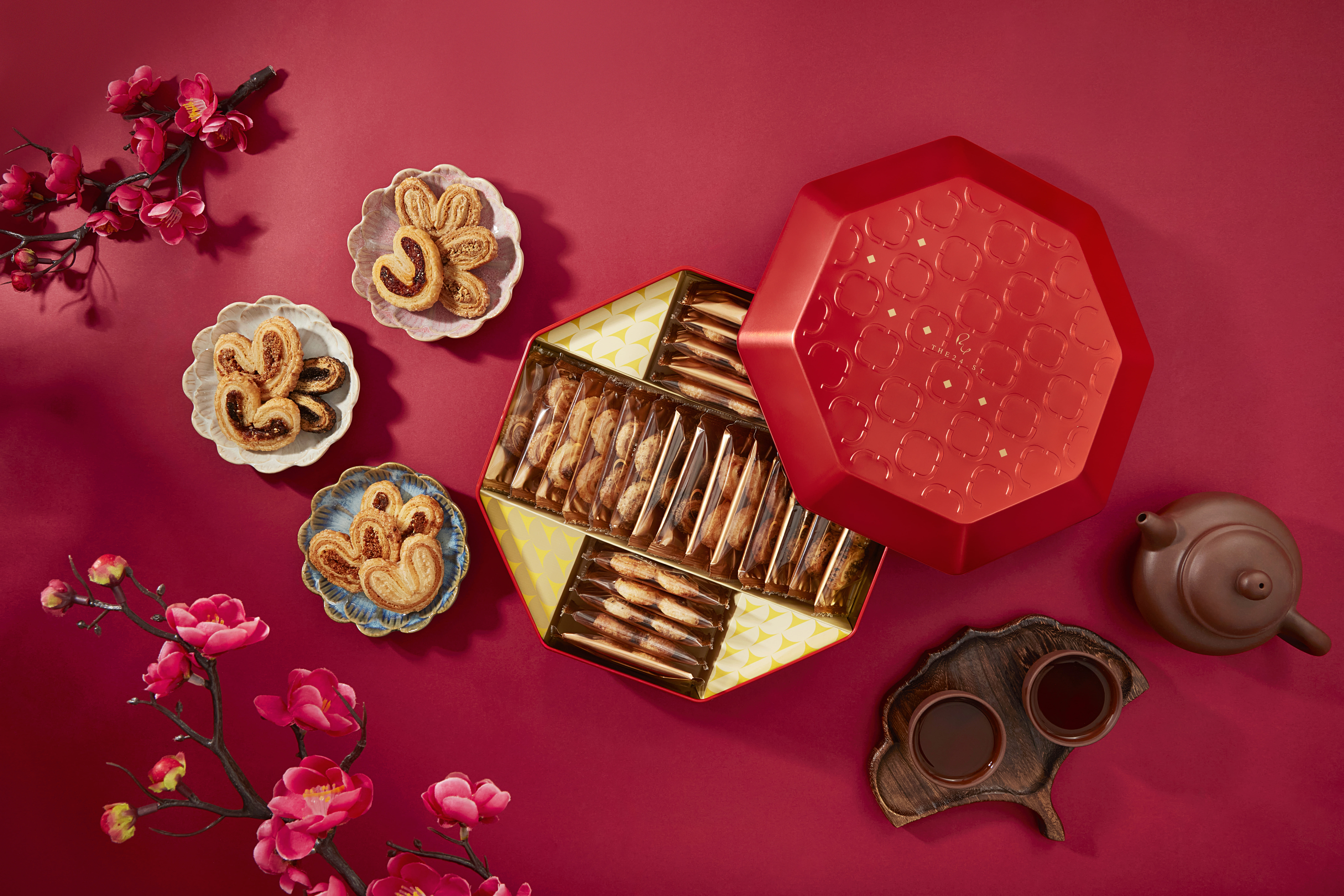 - 「THE 24 . ST」精心设计了「禧礼•蝴蝶酥回礼礼盒」,以喜庆的红色搭配优雅的花朵图案,为顾客的婚礼增添一份浪漫氛围。礼盒内含两片独立包装的蝴蝶酥,提供12款灵感来自二十四节气的创意口味,每口都充满惊喜与美好祝福。
