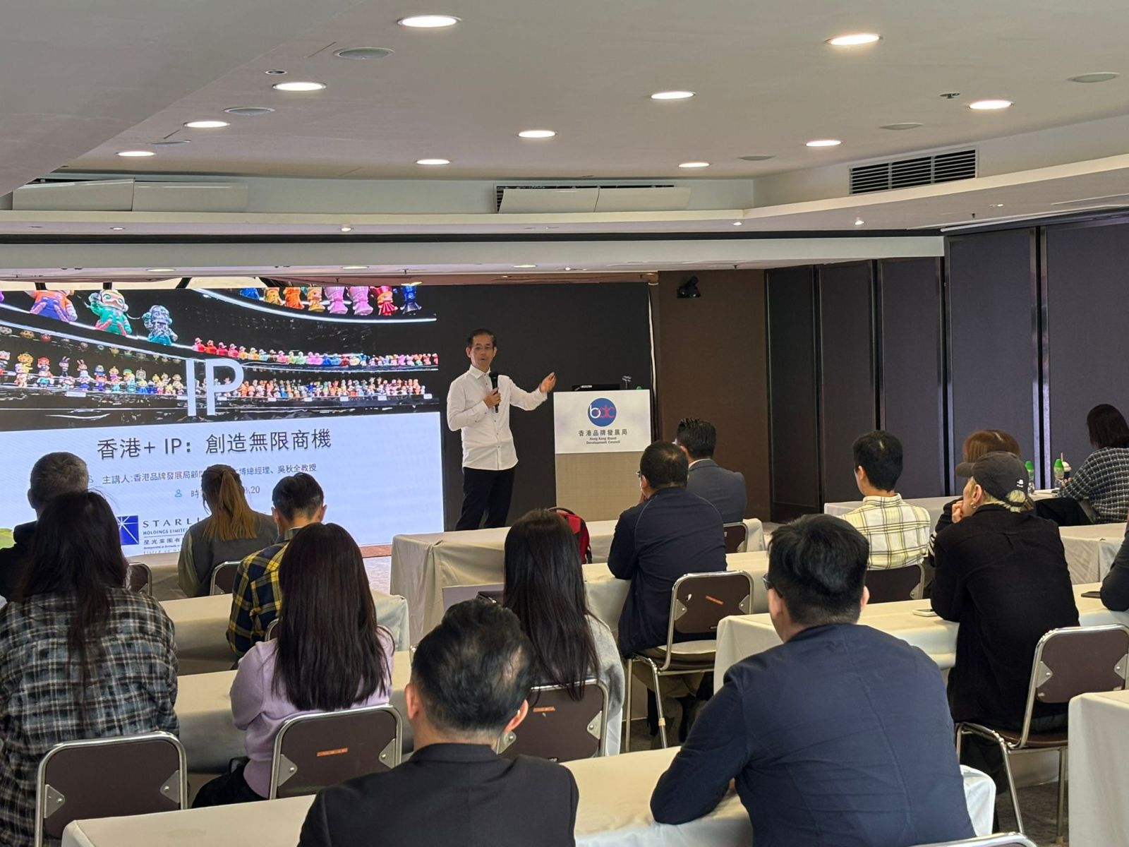 2026年度「中小企品牌群策营」第一次活动于3月20日于厂商会大厦27楼会议厅,是次研讨会以「香港+IP品牌 : 创造无限商机」为主题,邀得星光文博总经理兼品牌局顾问吴秋全教授讲解香港IP品牌的潜力与发展方向。