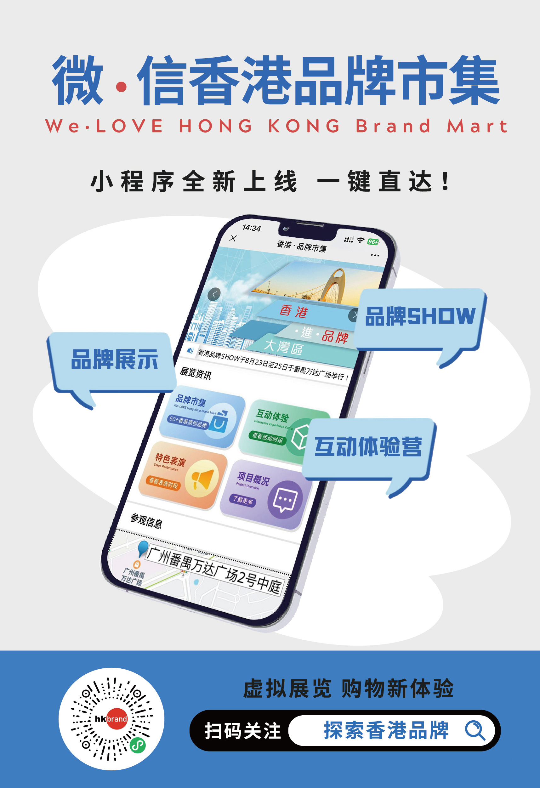 於微信上建立「微.信香港品牌市集」(We.LOVE HONG KONG Brand Mart) 的推广小程序,形成一个与实物展示相对应的虚拟展览空间,同步展示「广州站」活动参与品牌的资讯,并链接至参与品牌自己的微信官方账号或网站;以助力香港品牌开展网络推广,迎合大湾区消费者信息获取和购买渠道向数码化转型的趋势。