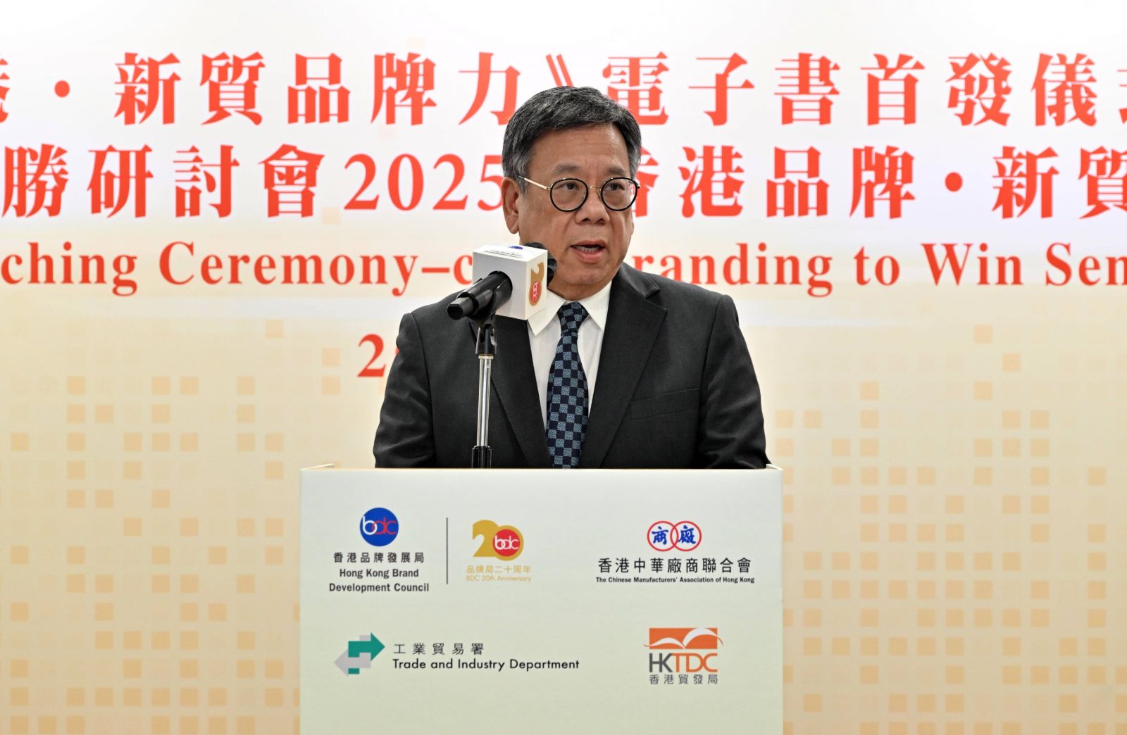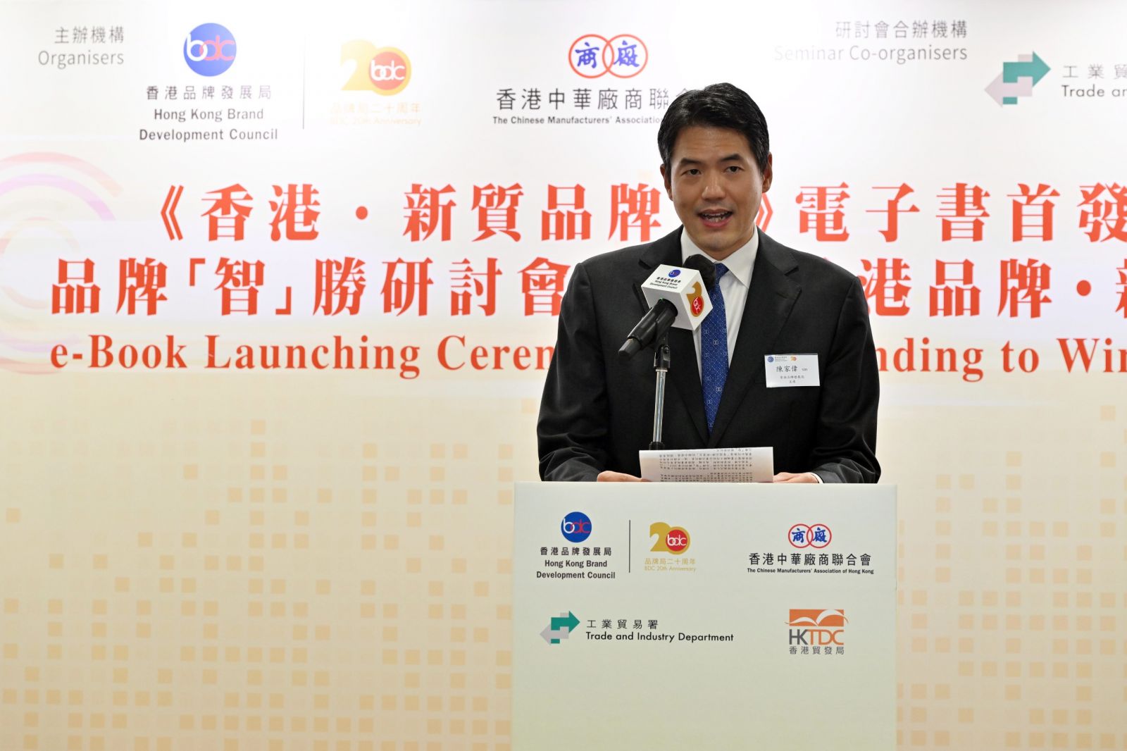 品牌局主席陈家伟致欢迎辞时表示,为庆祝成立二十周年,品牌局以「廿载同深耕.一起再启新程」为主题推出一系列志庆活动,包括制作纪念短片、举办志庆晚宴、设立「品牌局二十周年特别荣誉奖」、举行「品牌『启』行」企业探访活动,以及推出「香港‧新质品牌力」报章专访及视频系列等。