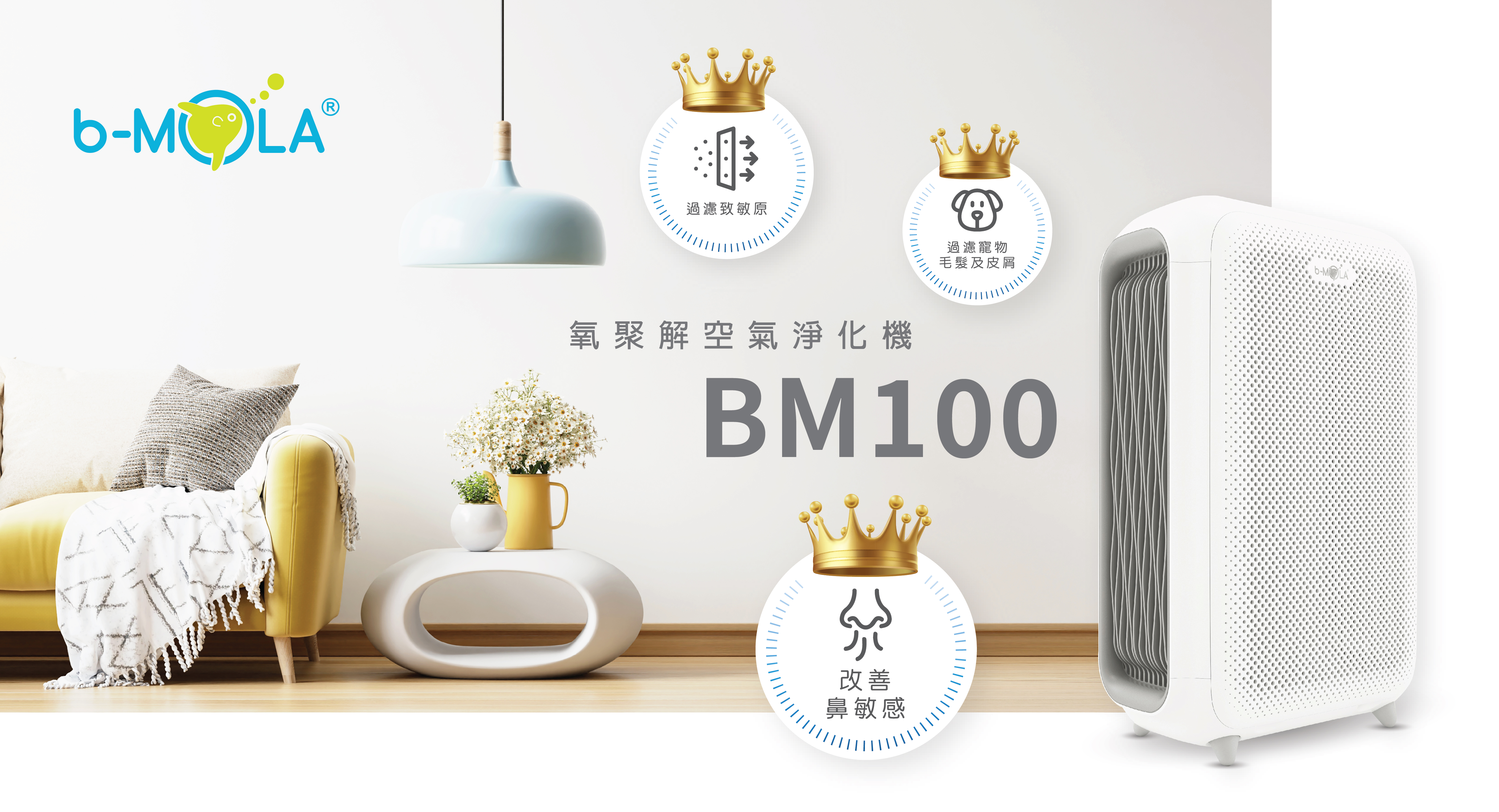 - 「b-MOLA」提供不同大小的空氣淨化機,以便應用於不同環境。「BM300」大空間用空氣淨化機為最大風量的型號,可用於1,500平方呎的較大型空間;亦有應用於房間和客廳等空間的「BM50」和「BM100」,以及供辦公桌、車廂或小房間使用的「BM10」、「BM20」。