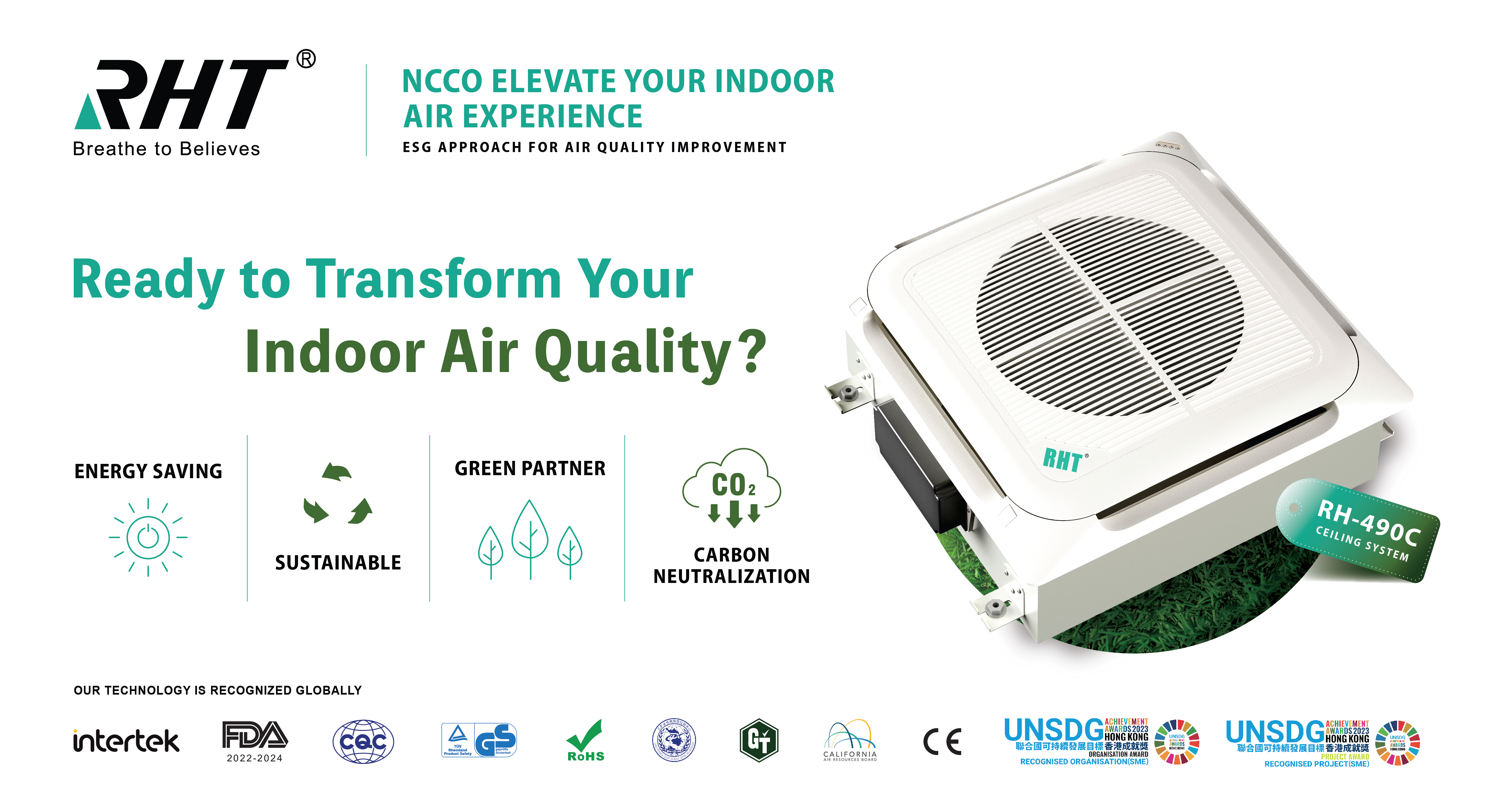 - 「氧聚解空氣處理技術」能有效去除異味,有助室內場所減少換氣次數及冷氣用量,達致節能減碳;產品的濾芯壽命長達12年,減少更換及棄置舊濾網產生的廢物。