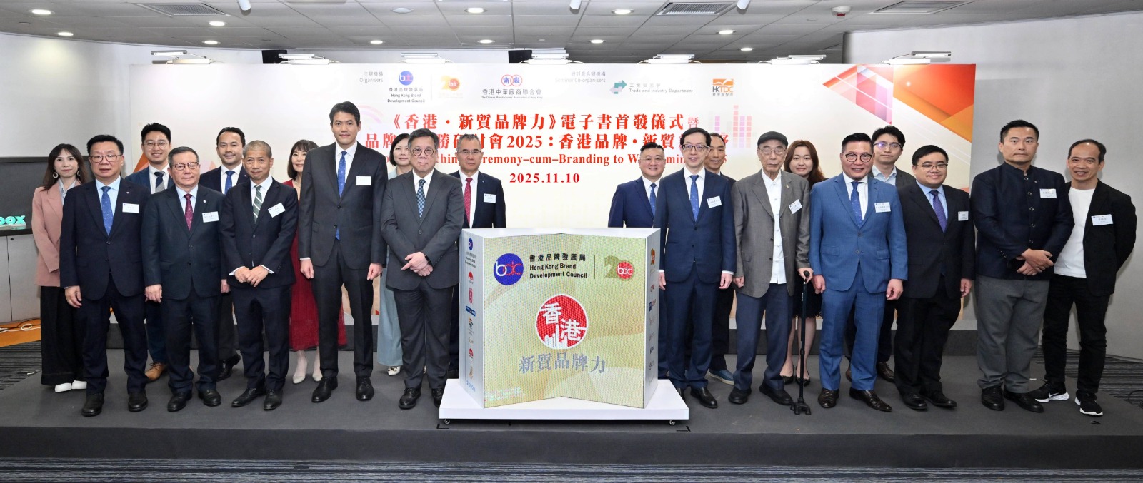 為慶祝香港品牌發展局成立二十周年,品牌局於2025年11月10日假香港貿發局中小企服務中心舉行《香港・新質品牌力》電子書首發儀式,邀得商務及經濟發展局局長丘應樺擔任主禮嘉賓,並聯同廠商會會長盧金榮、品牌局主席陳家偉、品牌局榮譽主席楊孫西、知識產權署署長黃福來、品牌局榮譽主席史立德,以及廠商會常務副會長馬介欽一同主持首發儀式,宣佈《香港・新質品牌力》電子書正式發布。近100位政府官員、商會領袖、品牌局及廠商會成員,以及電子書參與品牌代表及專家出席支持,共同見證這個別具意義的重要時刻。